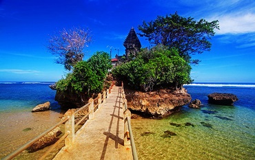 Pantai ini memiliki pura di atas pulau karang sama seperti Tanah Lot di Bali. Bedanya, pura di sini berukuran lebih kecil dan memang sengaja dibangun pada tahun 1985 oleh bupati Malang mengikuti desain Pura Tanah Lot. Mengikuti tempat wisata di Bali tersebut bukan berarti pantai ini tak menarik. Pura yang dihubungkan dengan jembatan beton sepanjang 100 meter ini terlihat cantik terutama pada saat senja.